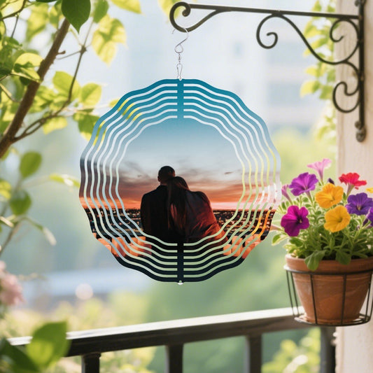 Custom Photo Mandala Heart Wind Chime | 3D Rotating Decor | BuyEcEc